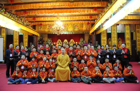 2011年1月28日下午弘法寺方丈印顺大和尚专门去看望了参加弘法寺国学冬令营的小朋友们。小朋友们对大和尚的到来异常欢喜。大和尚详细询问了小朋友们一周以来生活学习的情况,并对一周以来辛苦工作的老师们表示感谢。之后大和尚为此次冬令营的全体师生做了慈悲开示,大和尚在开示中说:“小朋友们,老师们,我们的冬令营虽然明天就要结束了,但是我希望从明天开始我们都有一个新的生命,新的生活习惯。真正的把我们这些天学到的东西,用到我们的实际生活,实际学习和实际工作当中去......,我们要有一颗感恩的心,感恩父母对我们的养育、感谢师长们的教诲,感谢我们身边的每一个人......”。