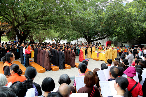 2019年4月8日弘法寺报恩思亲水陆法会第六天中午十二时弘法寺山门广场举行放生法会受深圳弘法寺方丈印顺大和尚委托弘法寺首座一如长老拈香主法依...