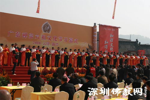 禅宗六祖慧能故乡、广东省云浮市新兴县,佛光普照,梵音绕梁,由广东省民族宗教委、云浮市人民政府和广东省佛教协会联合主办,新兴县人民政府和云浮市有关部门共同承办,主题为“弘扬禅宗优秀文化,共建和谐美好社会”的2008年“广东禅宗六祖文化节”隆重开幕。中共广东省委常委、统战部部长周镇宏,省政协副主席蔡东士、云浮市委书记王蒙徽、市长黄强以及来自海内外的有关方面负责人、专家学者、高僧大德和佛教界、社会各界人士1500多人出席了开幕式。深圳弘法寺方丈印顺大和尚应邀参加并出席本次活动开幕式。