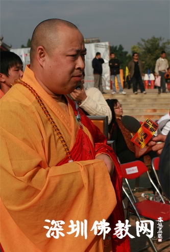 深圳弘法寺方丈印顺大和尚在开幕式现场接受南方电视台的采访