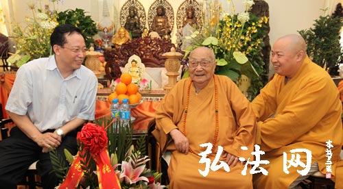 在亲切的交谈中,张思平详细了解了本焕长老的健康情况,代表市委向这位年高百寿仍孜孜不倦于弘法利生事业的佛门泰斗表达了崇高的敬意和衷心的感谢,同时祝福他老人家法体康泰,健康长寿。