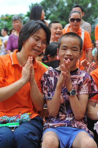 “请你们大胆的抱起他们,他们可能喊你为妈妈,也可能直呼你为爸爸。”得知义工们都希望能亲自与康复中心的小朋友互动后,在整齐列队的150多名深圳弘法寺义工面前,熊慕标这样鼓励大家。