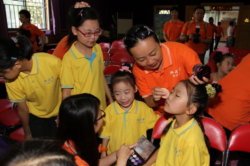 弘法寺国学班的小朋友在表演前化妆