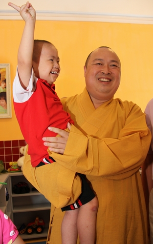 福利中心的领导在发言中对爱心人士的到来表示欢迎,对爱心善举表示感谢。他说:“深圳市福利中包括‘老人院、孤儿院和康复医院’三个部分,成立20年来,养育了数千名孤残儿童,目前已经有2000多名孩子被国内外的家庭收养。这些年,福利中心得到了弘法寺及深圳其它爱心单位的关爱和支持。也希望能有更多的爱心人士来关注弱势群体、孤残儿童。”