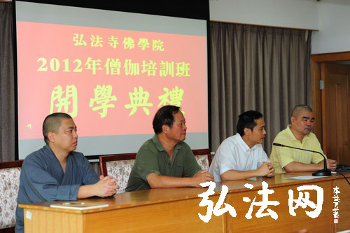 弘法网深圳讯:8月16日上午,弘法寺佛学院在弘法禅修中心举行2012僧伽培训班开学典礼。深圳市统战部副部长、深圳民族宗教事务局局长姚任,罗湖区宗教事务局局长李立笔应邀出席。