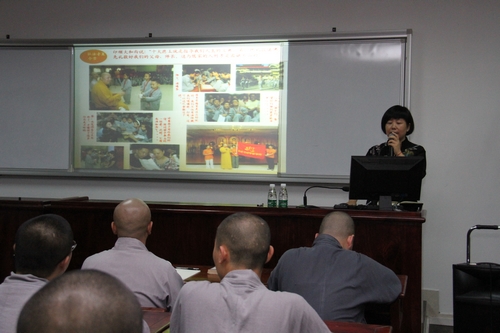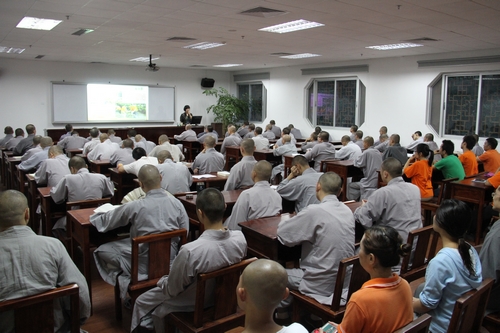 周一晚上是弘法寺对常住义工进行例行培训的时间。昨晚六点半,在弘法寺佛学院第四课室,弘法寺全体常住义工与佛学院师生一起,认真聆听了义工办何玉芳居士关于弘法寺《义工的价值》的主题分享。何居士用生动的图片作展示,分别从义工“对社会的价值、对寺院的价值、对个人的价值”三个方面阐述了弘法寺义工如何“在服务中修行、在奉献中成就”。