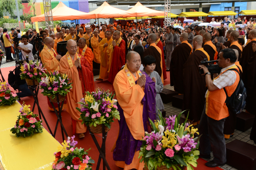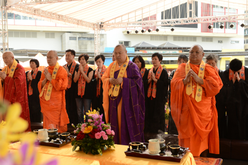 当天澳门假佑汉公园内佛旗飘扬、鲜花簇拥、钟鼓齐鸣、嘉宾云集,一派祥瑞庄严的气象。法会于3时准时开始,法师排班迎请诸山长老,用汉传佛教最隆重、最殊胜的法会,弘扬佛教慈悲喜舍的精神,救度众生离苦得乐。祈祷实在是法喜充满,因缘殊胜。在梵香阵阵,经声圣号中祈祷世界化干戈为玉帛,灾难不在,民众安乐,祈祷国泰民安、人民安康、世界和平!
