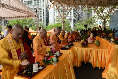 澳门首届“冥阳两利《瑜伽焰口》超度亡灵祈福大会”于下午3时在假佑汉公园隆重举行。应邀参加本次法会的高僧大德有:泰国副僧王帕波玛师提长老,澳门佛教总会理事长、澳门菩提禅院住持、香港南天竺寺住持健钊长老,安徽省二祖禅寺住持、褒禅寺住持绍云长老,中国佛教协会副会长、海南省佛教协会会长、尼泊尔中华寺方丈、深圳弘法寺方丈、三亚南山寺方丈印顺大和尚,香港佛教联合会执行副会长、香港正觉莲社副社长、香港观宗寺方丈宏明大和尚,泰国郑王庙方丈赵坤‧阿伦,江苏省佛教协会副秘书长、镇江市佛教协会副会长、宝华山隆昌寺方丈心平大和尚,澳门普善佛堂、澳门普善佛教慈善会副会长宽静大和尚,浙江省普陀山观音菩萨道场俊生长老,浙江省乐清市遂应古寺首座悟禅法师。