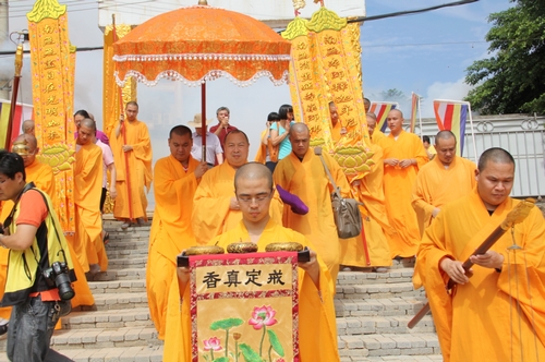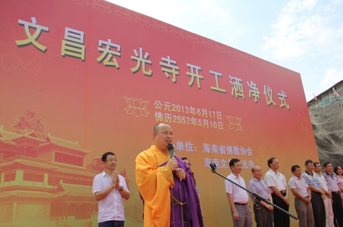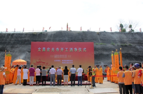 弘法网讯:2013年6月17日上午10点,海南省文昌市宏光寺隆重举行寺院动工洒净仪式。
