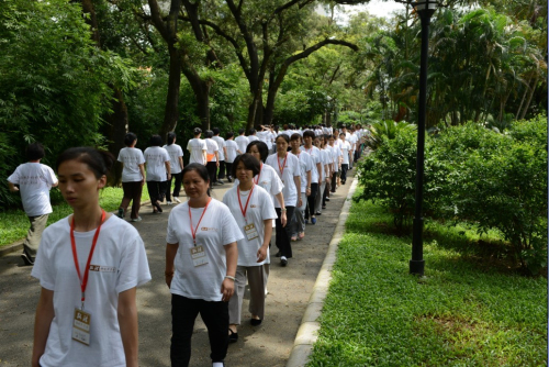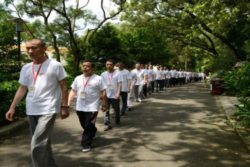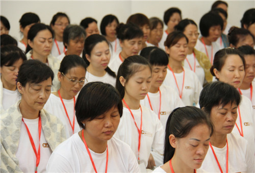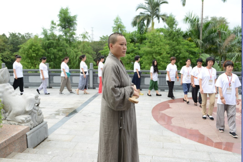 本次禅修,自7月6日至7月7日开始,为期两天。弘法寺的义工们一早到达现场迎接参加的禅修营的学员。义工们统一服装双手合十,整齐分开两侧站在罗湖区佛教协会门口并恭敬有礼地到来的学员说:“师兄,欢迎你回家。”让人无不法喜充满。学员们换上统一白色T恤,上面印有印顺大和尚常说的“在嘈杂的世界安自己的心”,这让学员心生欢喜的同时亦体会到了这次禅修的意义。