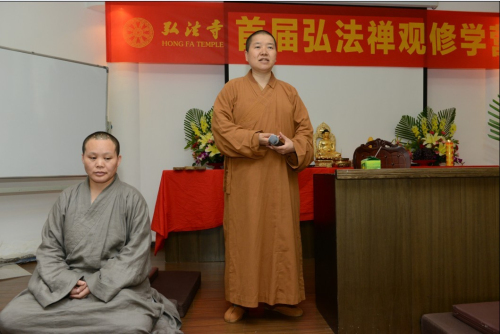 弘法网讯:为倡导“人文佛教”,弘扬佛陀正法,重塑社会道德体系,建立和谐社会,2013年7月6日上午,弘法寺于罗湖区佛教协会举办首届禅观修学营。本次修学营礼请了江西省尼众佛学院副院长、大金山寺监院顿成法师教授禅修法门并指导坐禅。