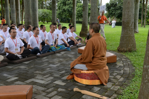 顿成法师给大家作了一场精彩的开示。学员精进学习,品尝佛法之清凉甘露,解开心头疑惑。一种和谐吉祥的喜气弥漫了整个活动现场。开示过后,顿成法师现场教学员如何打坐。