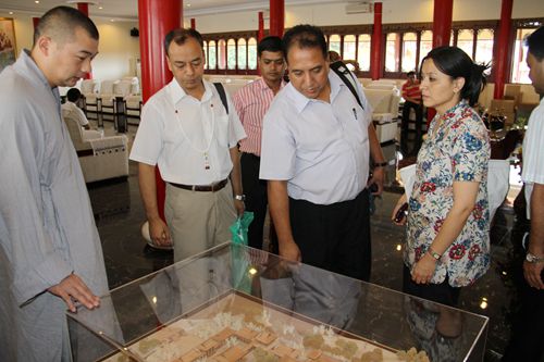 弘法网讯:7月29日上午,经中国驻尼泊尔大使馆介绍,尼泊尔文化部副部长、蓝毗尼开发委常务副主席吉米瑞一行十人到深圳弘法寺交流访问。中国佛教协会副会长、弘法寺方丈印顺大和尚热诚接待了客人。双方亲切交谈,各自介绍了本国佛教今年发展及中尼友好交流进展情况。