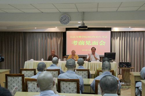 弘法网讯:2013年7月29日至30日。弘法寺佛学院2013年招生考生考试在弘法寺禅修中心举行,经过笔试、面试和综合考评,学院最后决定录取出家众30名,在家众12名。