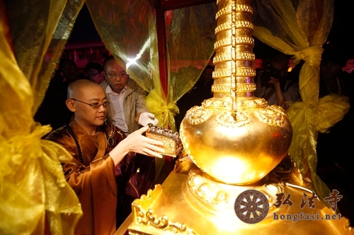 印杰大和尚将本焕长老舍利安奉在舍利塔中