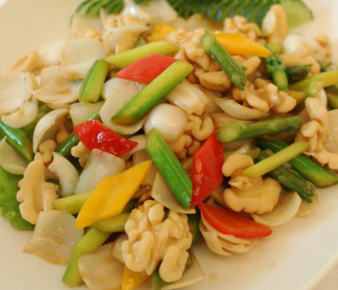 主料: 鲜百合、芦笋、鲜核桃仁、红椒、黄椒 调料: 盐、蘑菇粉、辣椒油、酱油、陈醋、白糖、芝麻油制作过程: 1、先将芦笋洗净削去老皮切成小段,红椒、黄椒洗净切...