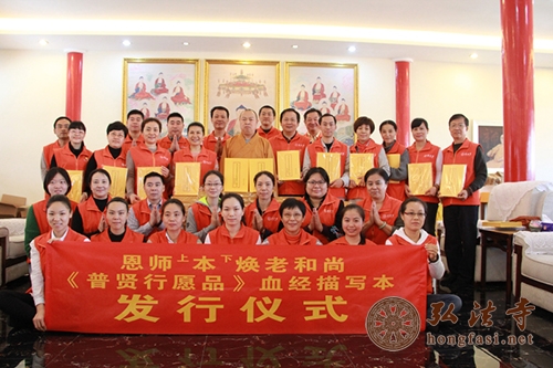 回顾2015年,协会公益书法班收获颇丰。承担了弘法寺祈福法会、水陆法会、华严法会等书写牌位,在常住安排下为水陆法会书写各坛口开牌;由书法班学员发心组建印经组,发动众师兄和居士们发心供养30余万元,印刷了《大方广佛华严经普贤菩萨行愿品》本焕长老血经描写本,并于岁末承担了志愿者协会2015年年会2000副新春对联的书写。每一次活动的参与,都是一次历练与提升,都让每一个学员欢欣不已。