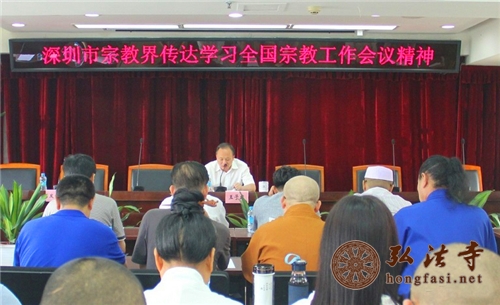 弘法网深圳讯:2016年5月11日下午,深圳市委统战部、市民宗局组织全市宗教界人士学习全国宗教工作会议精神。五大宗教届代表人士听完会议精神后进行了踊跃发言,表示要进一步深入学习领会,贯彻落实好习近平总书记在全国宗教工作会议上的重要讲话精神,为构建社会主义和谐社会,建设美丽深圳发挥作用。