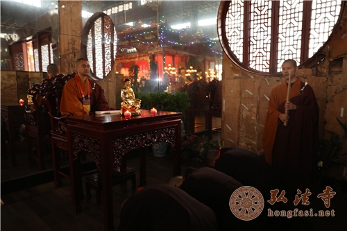 2016年12月23日,深圳弘法寺第四届及尼泊尔中华寺第二届三坛大戒法会进入第九天。是日内容有本堂露罪、衣钵名相、查验衣钵。