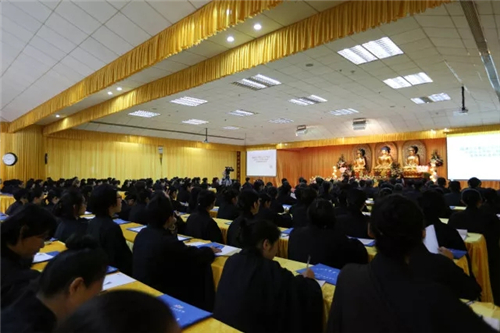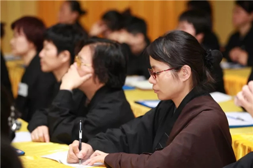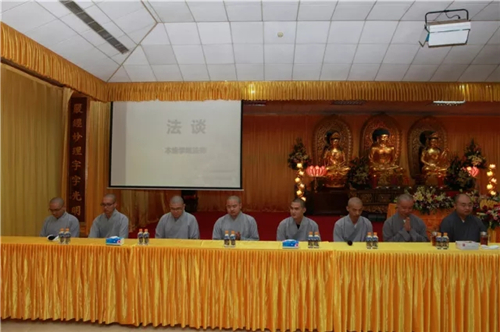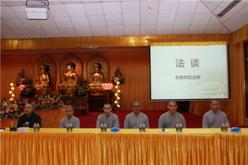 下午举行法谈活动,本焕学院十余位法师列席经堂,与众戒子交流互动,戒子们提出心中的疑惑,请法师慈悲开示。戒子所提问题有切近生活诸如不饮酒戒、不杀生戒,有犀利如出家人如何控制七情六欲。法师们悲智双运,为戒子们作精彩回答,大众心开意解,法喜充满。