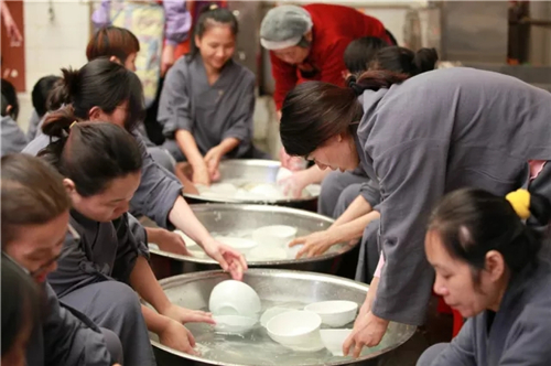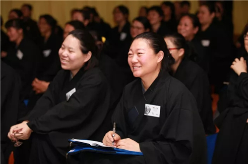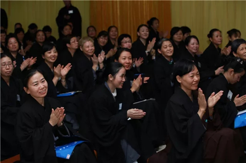2017年12月3日,二百余名戒子在经过一日一夜闻修佛法、佛法开示、法师教嘱后欢喜出堂,第四期八关斋戒圆满。