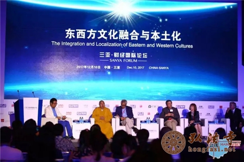 弘法网三亚讯:2017年12月10日下午2时,由中国国际友好联络会主办,《财经》杂志承办的非政府间、国际性的财经领域的高端对话平台“三亚·财经国际论坛”,在三亚海棠湾举办了“东西方文化融合与本土化”的专场论坛。