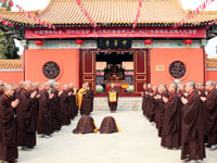 上本下焕长老(1907—2012),法名心虔,清朝光绪三十三年(1907)出生于湖北新洲。1930年出家,出自中国现代两位佛教宗师来果禅师与虚云长老门下,系南禅临济正宗第44代传人。2012年4月2日,零时36分,长老安祥示寂于深圳弘法寺,世寿106岁,僧腊84夏,戒腊84夏。本焕长老终身奉行“不为自己求安乐,但愿众生得离苦”的普贤大愿,弘法布道,创办佛学院,续佛慧命,绍隆佛种。