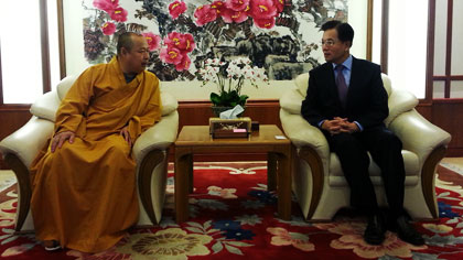 顿力法师:非常感谢弘法寺印顺大和尚的慈悲,让我在这里短期出家,我想,这也是中泰两国佛教界首次以一个军人及泰国国家佛教委员会副主席的身份来弘扬佛教文化,在弘法寺出家。